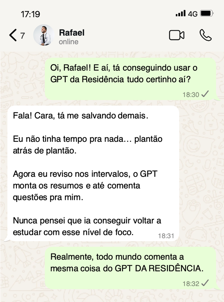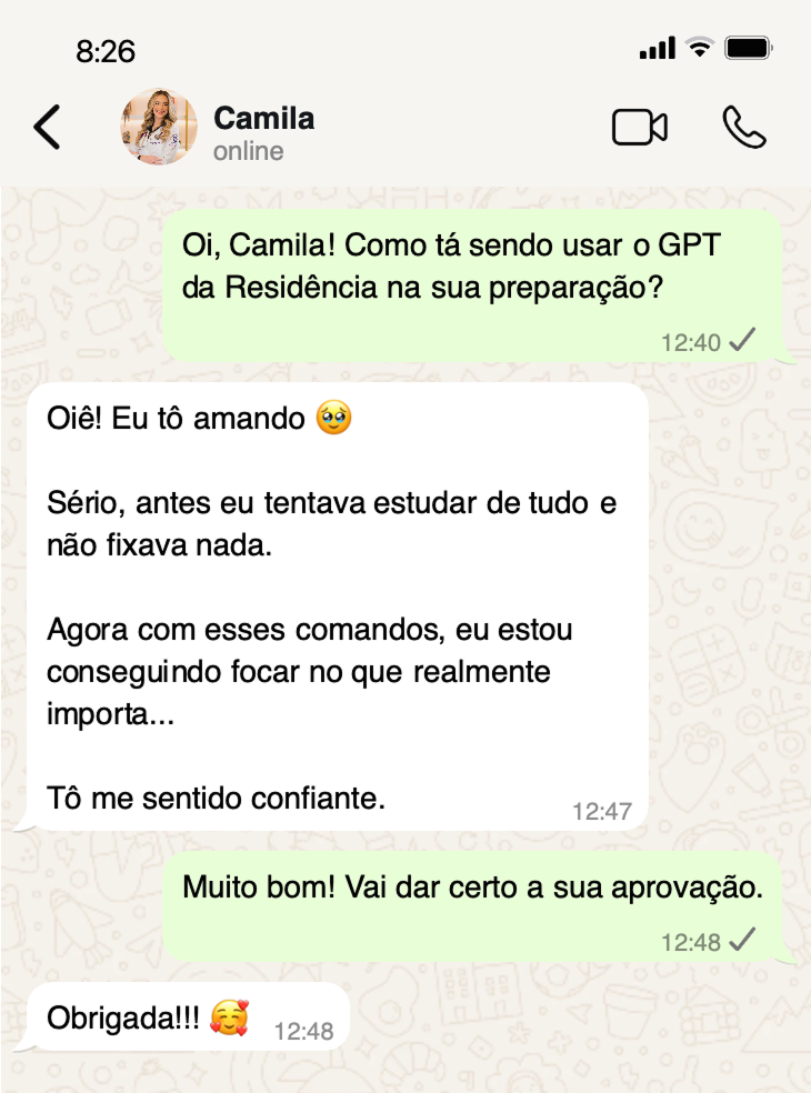 Agora é só copiar e colar os comandos do GPT da Residência e garantir sua aprovação no próxima prova de Residência que fizer.